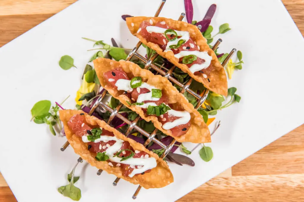 We love this crispy, fresh, and fun Asian/Mexican Fusion appetizer. It is a crowd-pleaser and is just spicy enough to make you want more.