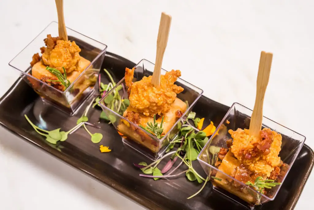 Arriving at your event, your guests will be hungry. Their attention should be on the decor, but they can’t see past their noses! The smell of our event appetizers, always made fresh and on-site, has been known to hypnotize. Trust us to set the stage with our incredible appetizer menu. We have something for everyone, no matter the taste pallet or dietary restriction. Below are just a few of our guest-rated “Must-Have” appetizers. Contact us for more if any of these rouse your appetite!